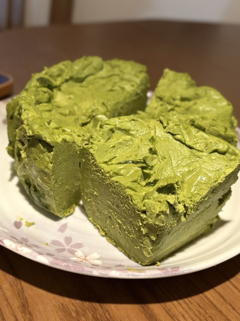 抹茶チーズケーキの完成でした🧀